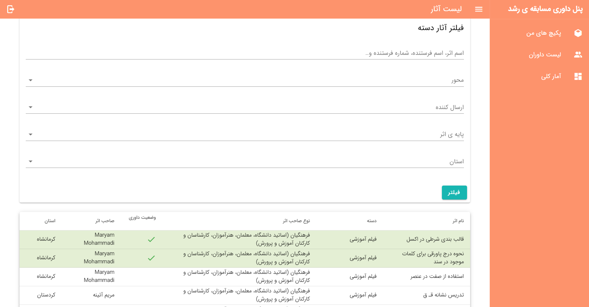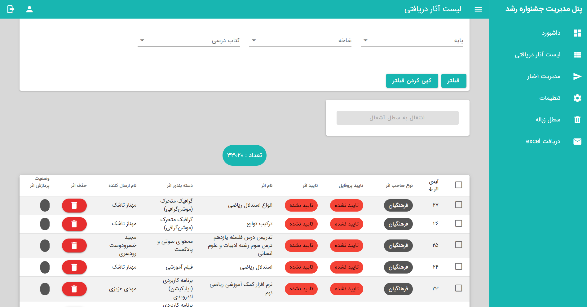 در این ماژول دریافت آثار همراه با مشخصات اثر صورت میگیرد.