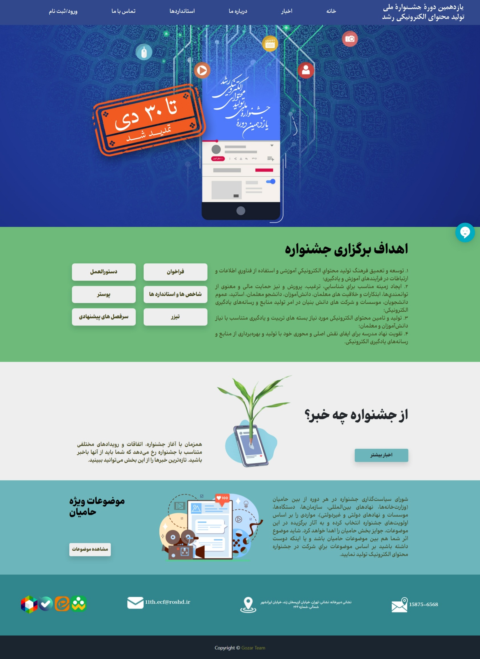 جشنواره تولید محتوای رشد فرصت مناسبی براي ابتکارات و خلاقیت های معلمان، دانشآموزان، دانشجویان و ... در ساخت منابع و رسانههای یادگیری الکترونیکی است. در سایت جشنواره امکان ثبت نام و آپلود آثار توسط شرکت کنندگان ، مدیریت کاربران و آثار توسط ادمین های سایت ، و رای دهی به آثار ارسالی توسط داوران میسر است. توسعه این سایت در شهریور 1401 آغاز و در آذر ماه 1401 تکمیل شد.