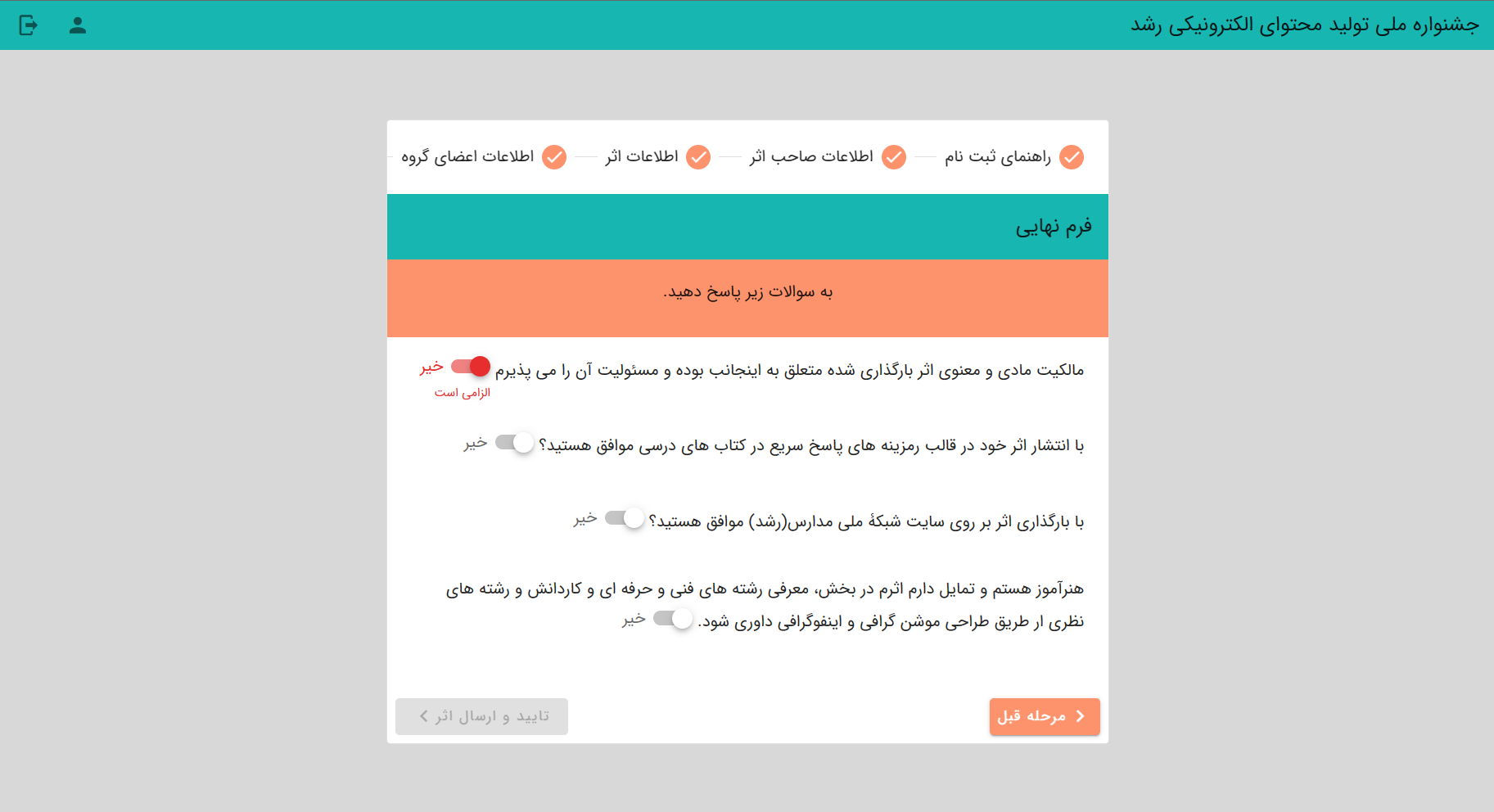 این ماژول قابلیت سفارشی سازی با فیلد های مختلف و فرمت های متنوع را دارد. کاربر پس از ساخت پروفایل کاربری و تکمیل اطلاعات میتواند فرم ارسال اثر را تکمیل و اثر خود را ارسال کند.