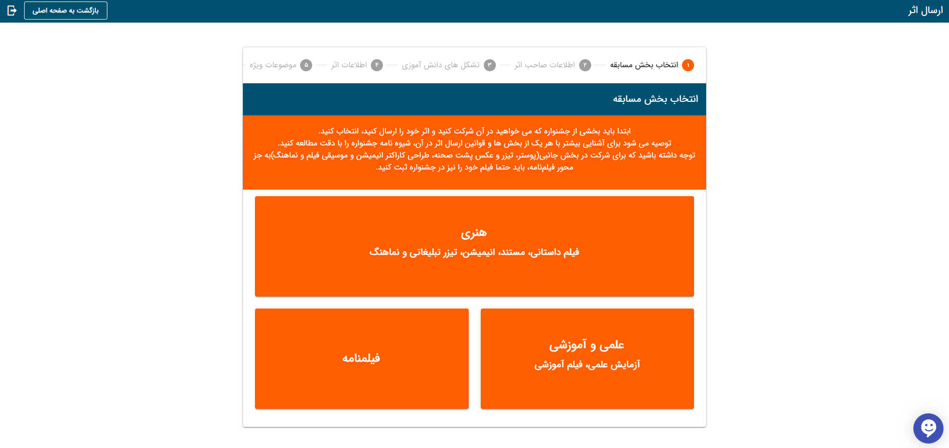 در این ماژول دریافت آثار ویدیویی در فرمت های مختلف صورت میگیرد، این ماژول قابلیت سفارشی سازی با فیلد های مختلف و فرمت های متنوع ویدیوی را دارد. کاربر پس از ساخت پروفایل کاربری و تکمیل اطلاعات میتواند فرم مورد نظر را تکمیل و اثر خود را با فرمت های مختلف ارسال کند.