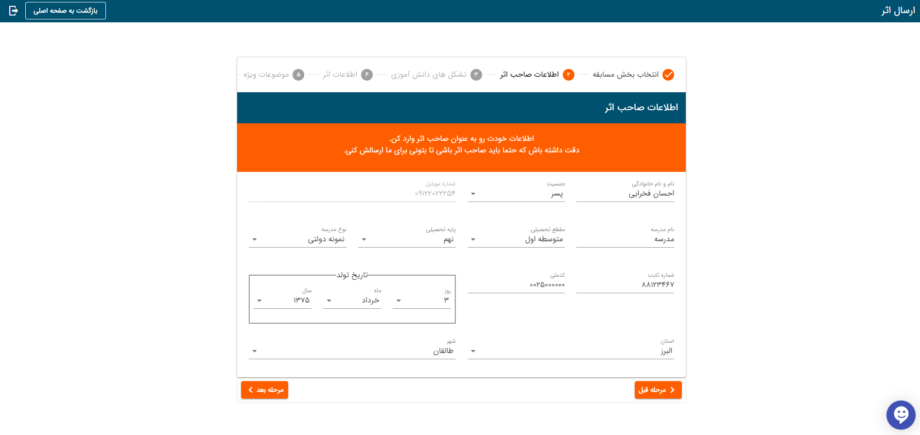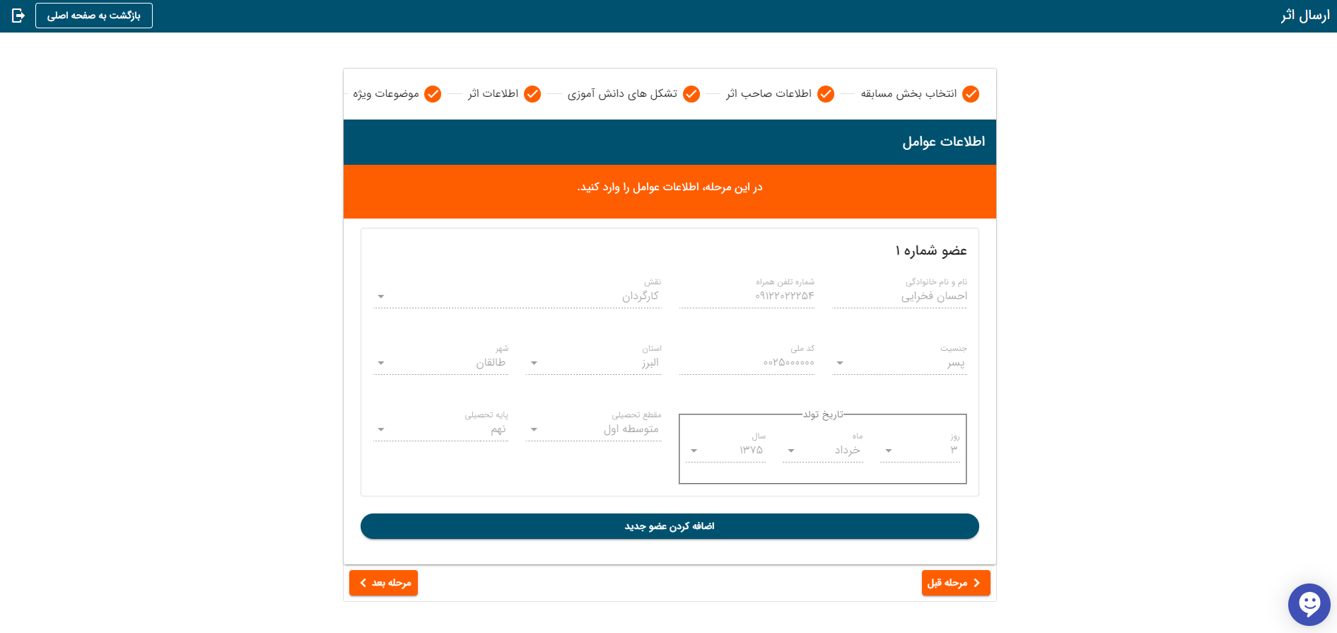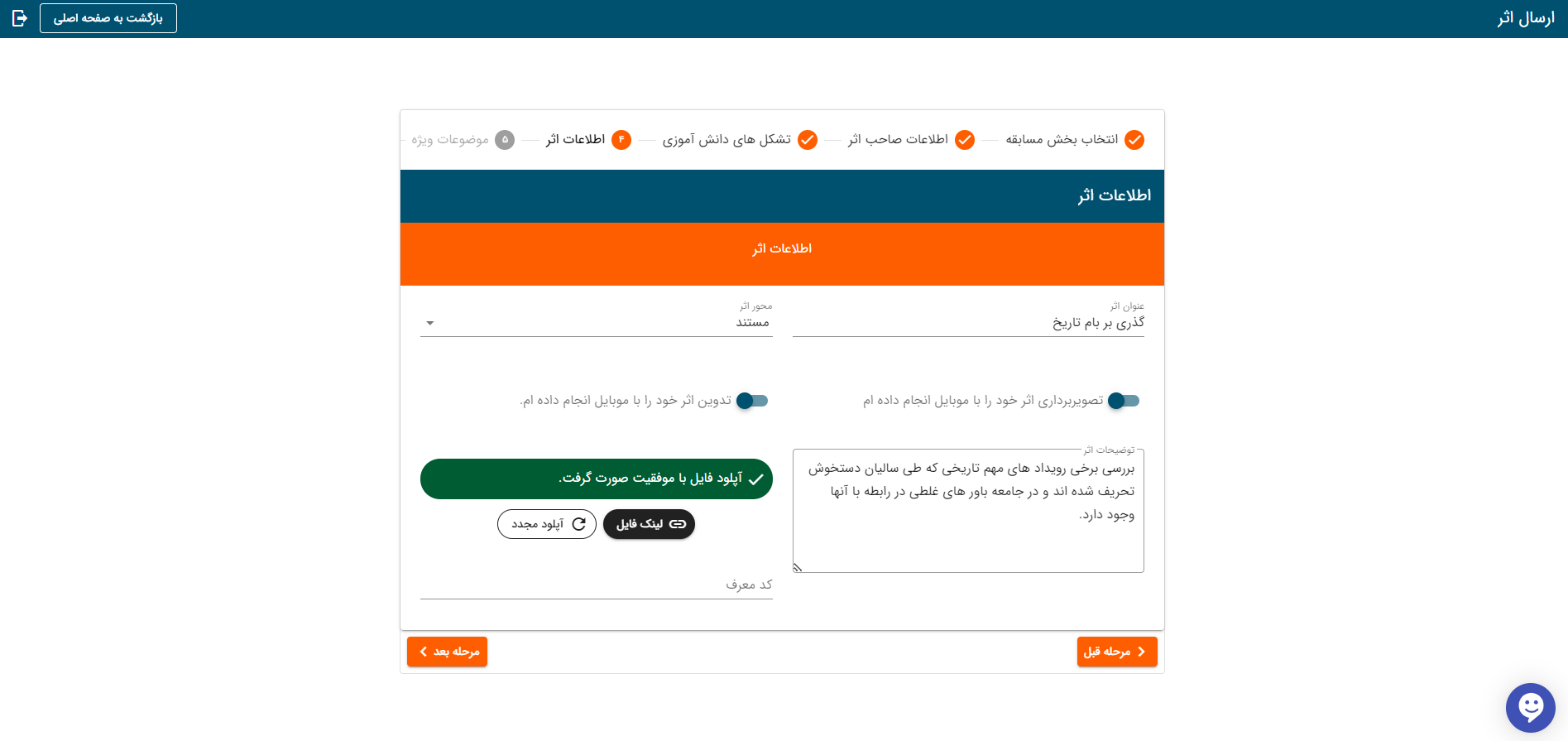 اصلاح اطلاعات اثر در پنل مدیریت